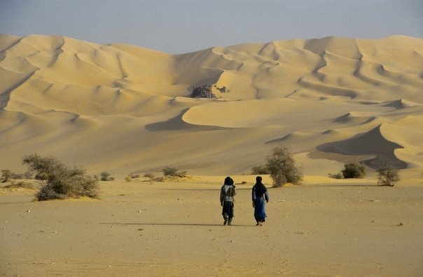 Foram precisos 4 dias para deixarmos o universo montanhoso do maciço Air, um circulo contínuo de montanhas para que tocássemos as longas extensões de areia em uma seqüência de dunas moduladas pelo vento, como num mar em movimento. É surpreendente.